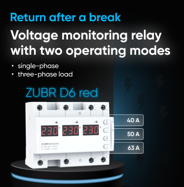 ZUBR voltage relays constantly monitor the voltage level in the power supply. If a dangerous fluctuation is detected — whether an increase or a drop — the device instantly cuts off the power to prevent damage to connected appliances. Once the voltage stabilizes, the relay activates a delay timer to ensure the network is steady. Only after that is power restored, helping to avoid repeated failures caused by brief power disturbances. Read more