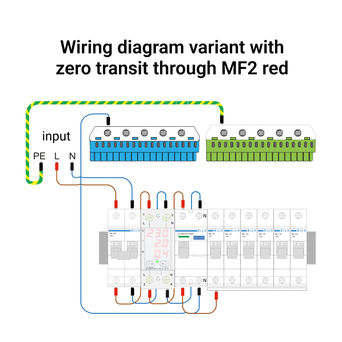 The ZUBR MF2 red has a convenient standardized input-output connection. It is possible to connect without using the neutral terminal. ZUBR MF2 red relay is very compact, occupies 2 standard modules in a switchboard equipped with a standard DIN rail width of 36 mm. If there is high humidity in the room or there is a possibility of water ingress to the device, then the switchboard must meet the protection class IP55 (according to GOST 14254).