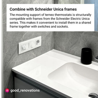 Терморегулятори terneo для установки в монтажну коробку сумісні з оригінальною рамкою terneo і рамками Schneider-Electric серии Unica Basic, Unica Colors, Unica Quadro, Unica Plus, Unica Top, Unica Class, Unica New.