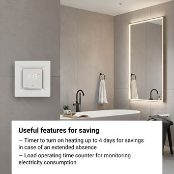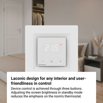 The device is equipped with thermal protection. If the temperature inside the housing reaches 85 °C, the thermostat will stop working until it drops to 80 °C. You can also lock the buttons so that the heating parameters will not be accidentally changed, for example, by your children.