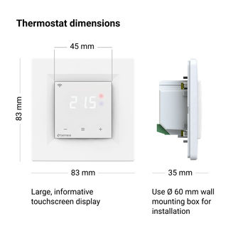 terneo thermostats are compatible with heating cables, films, analog (R10) and digital (D18) sensors of most manufacturers. It has a neat minimalist screen which saves electricity! At the same time, you get maximum functions and flexibility in terneo application and this is the most beautiful part of it. Remote control, expenses schedules, and the ability of terneo to self-learning provide greater heating savings and superior comfort.